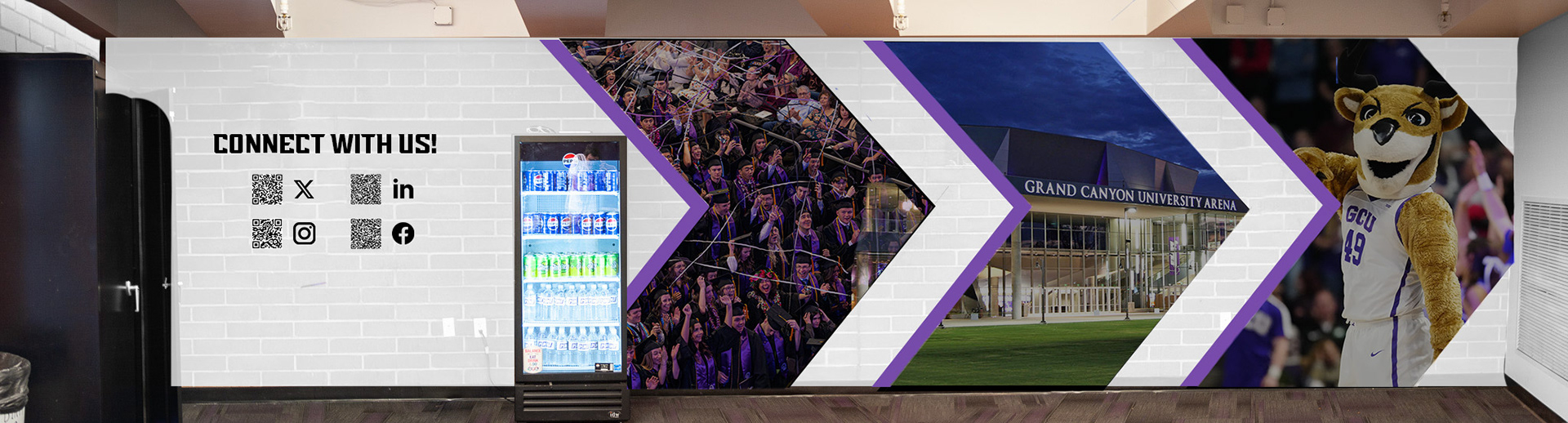 The objective of this project for Canyon Creative was to create a fun and inviting space that welcomes students to campus and leaves a lasting first impression of GCU’s campus. Between the creation of both indoor and outdoor spaces, students are able to get a quick glimpse of the community, academics, and student life at GCU.