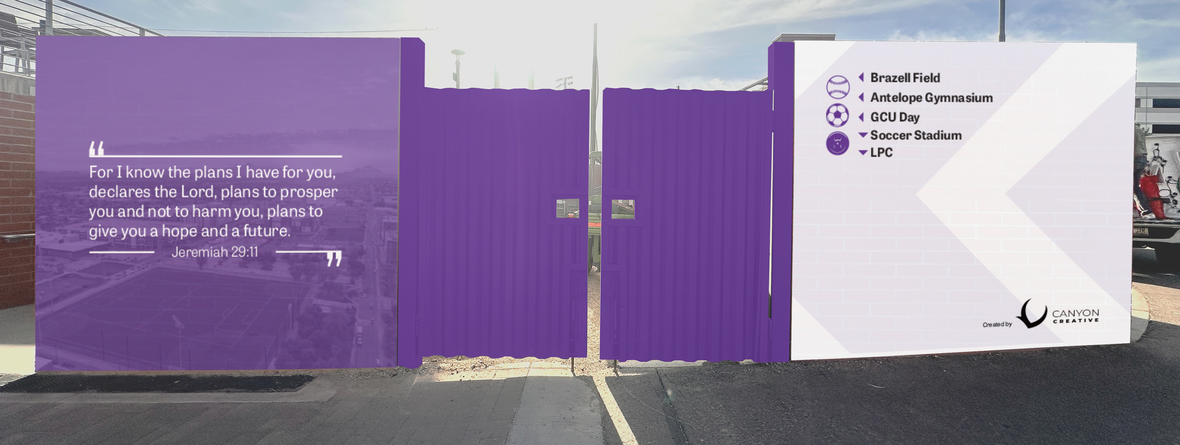 GCU Day is an opportunity for prospective high school students to visit Grand Canyon University’s campus and learn more about what life looks like as a GCU student. During my time as a graphic design intern for Canyon Creative, I was able to work on a campus beautification project for GCU Day.